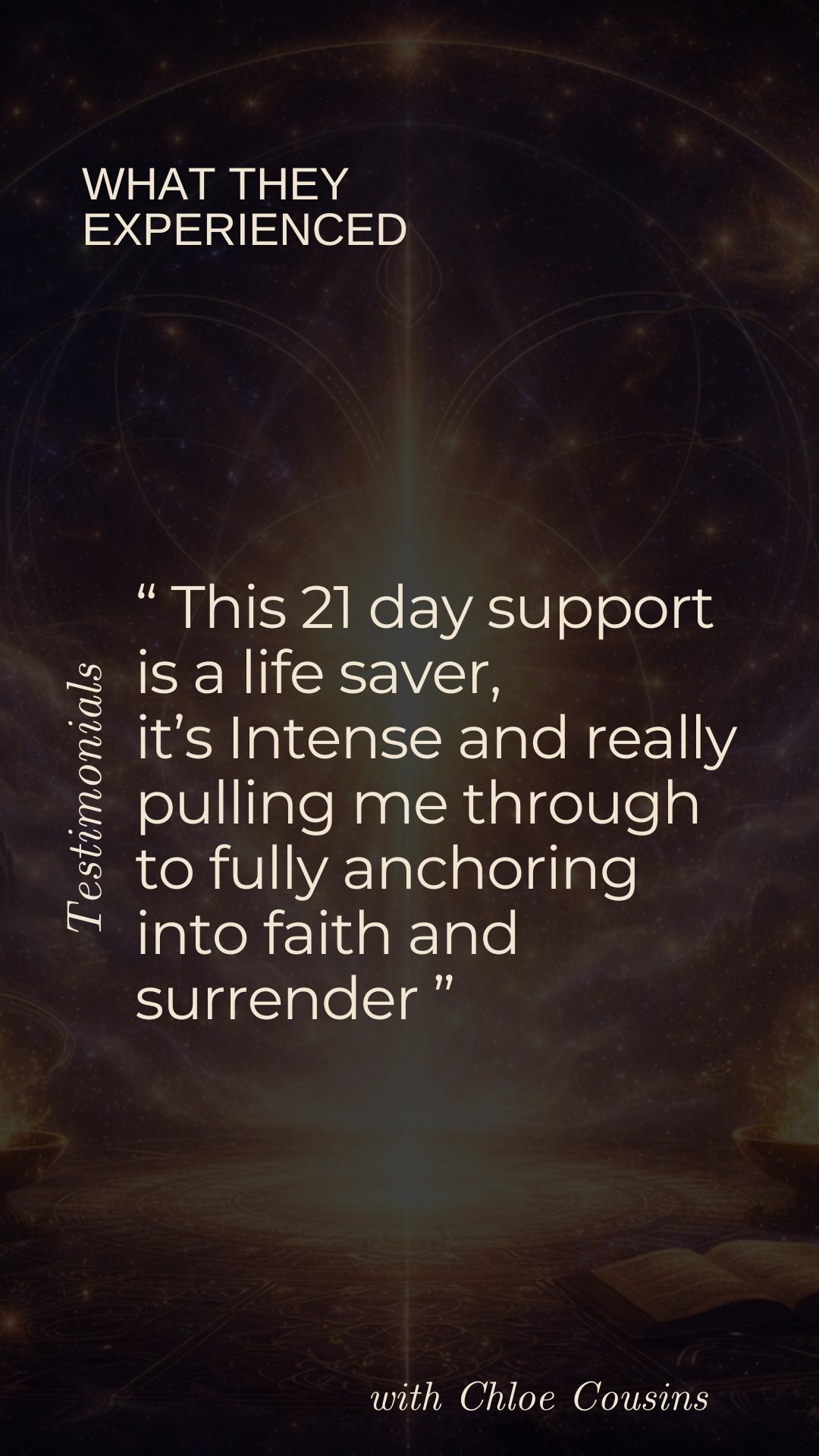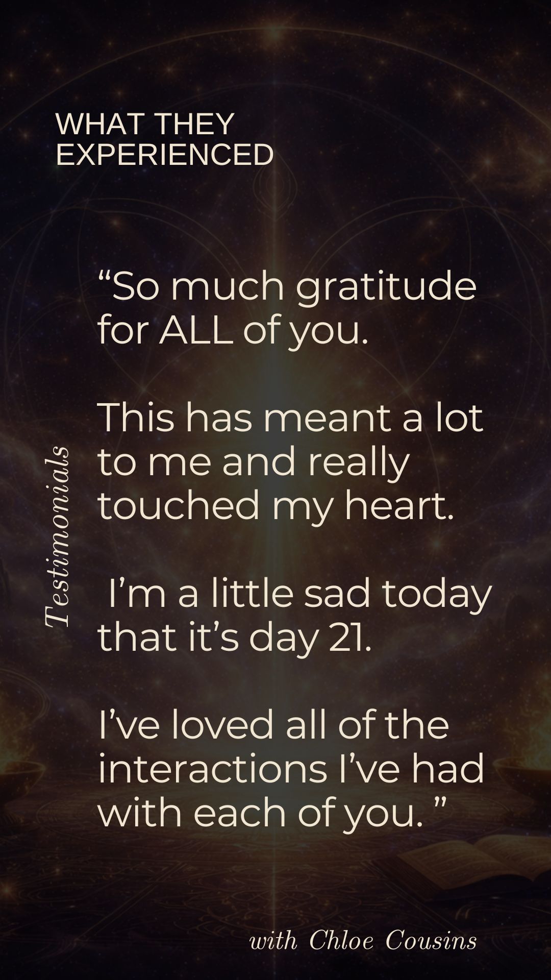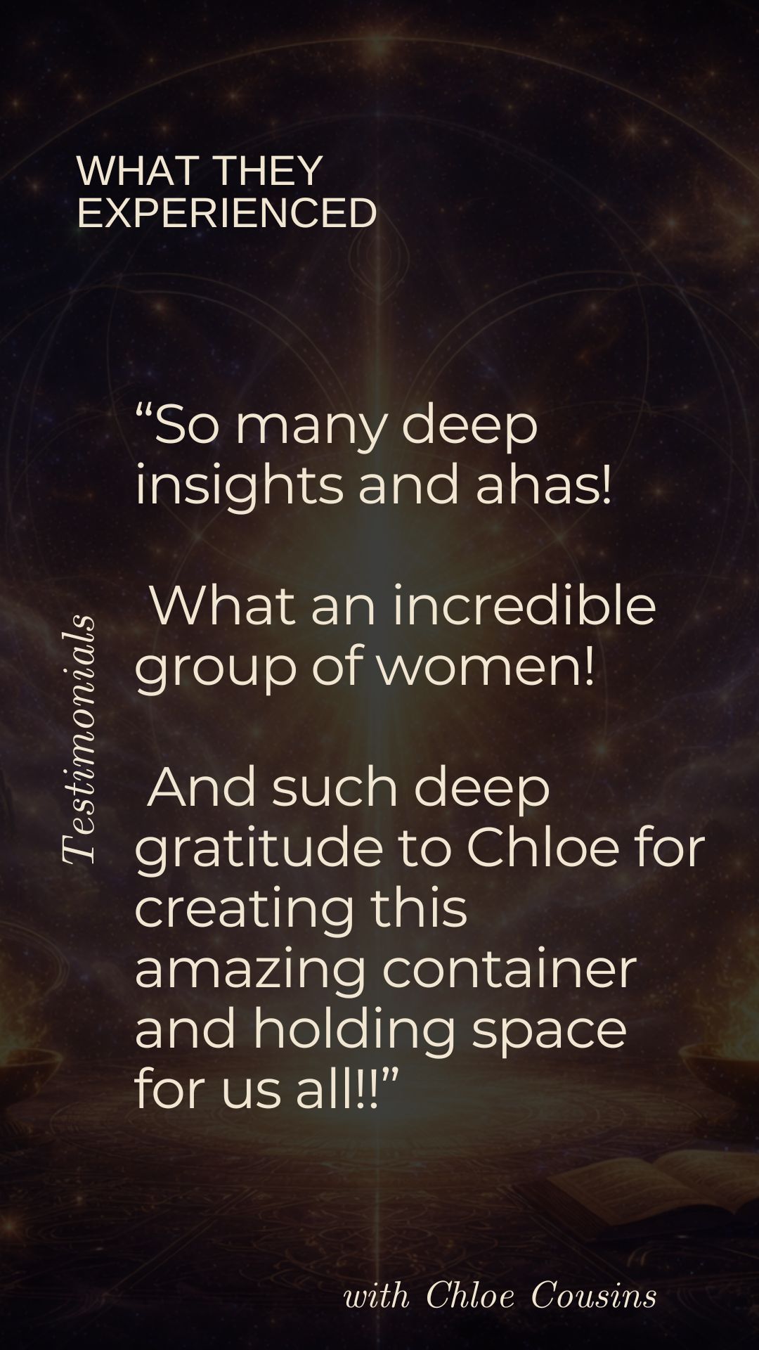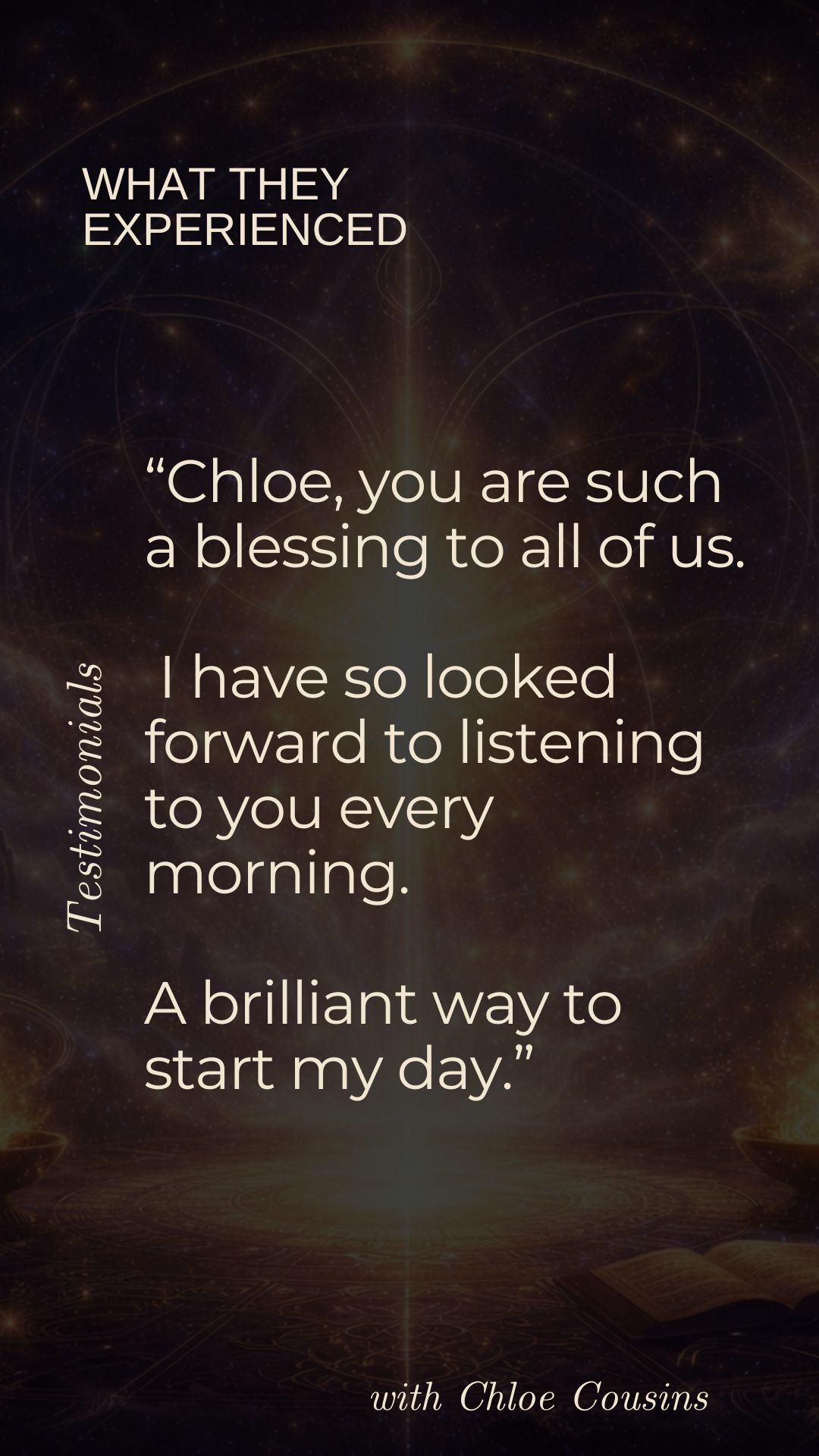 Known for translating the unseen into embodied clarity, Chloe has a rare ability to restructure and re-pattern the energetic field itself โ not only awakening remembrance of who you truly are but recalibrating your energetic architecture so that truth becomes embodied reality.